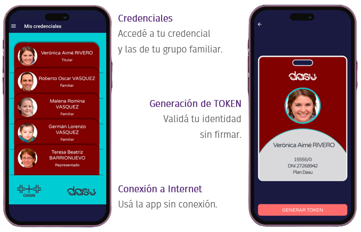 Tu credencial digital de DASU te permite identificarte ante los profesionales de la salud, y generar los tokens de validación cada vez que te sean requeridos.